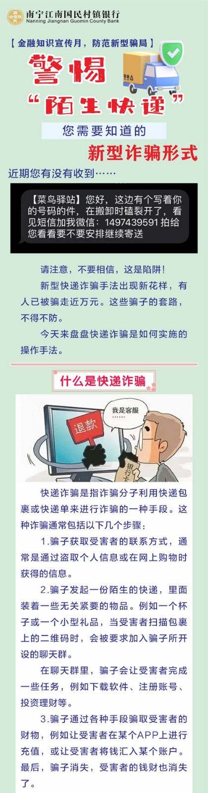 【金融知识宣传月,防范新型骗局】警惕“陌生快递”新型诈骗形式